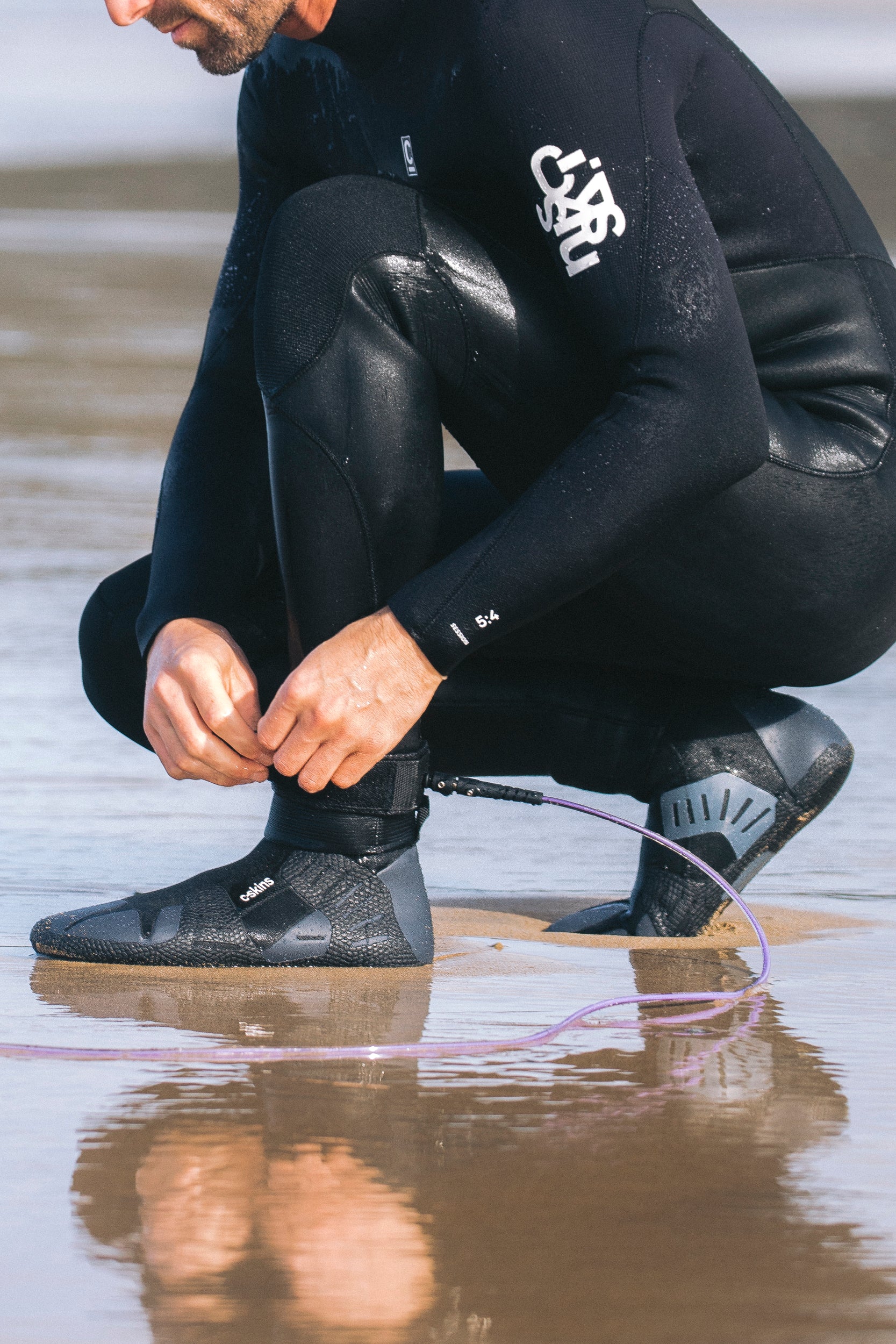 Wired Reef 2mm Boots feature a split toe with leash guard and an adjustable ankle toggle.